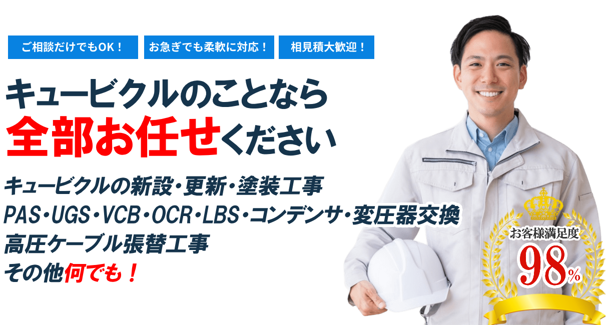 キュービクルの総合アドバイザーは、高圧受変電設備の点検・改修・交換工事を専門に行うプロ集団です。