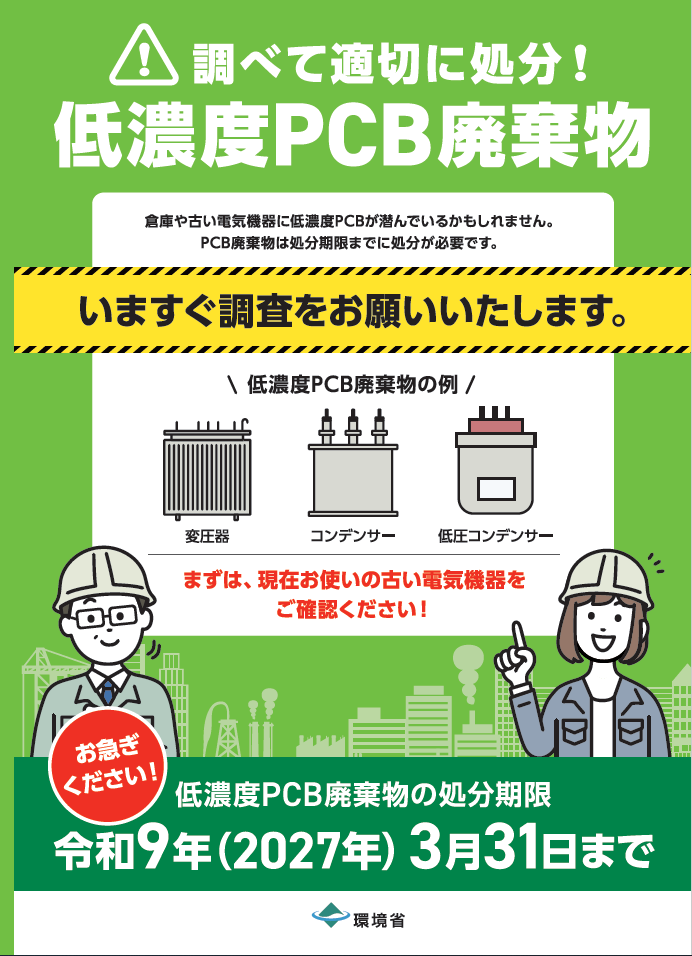 PCB廃棄物の処分期限は2027年3月31日で終了します。